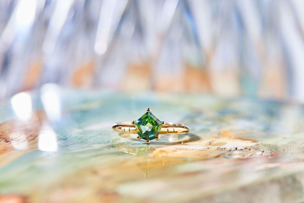 1.31 green Ct. Shield-Cut Montana sapphire ring