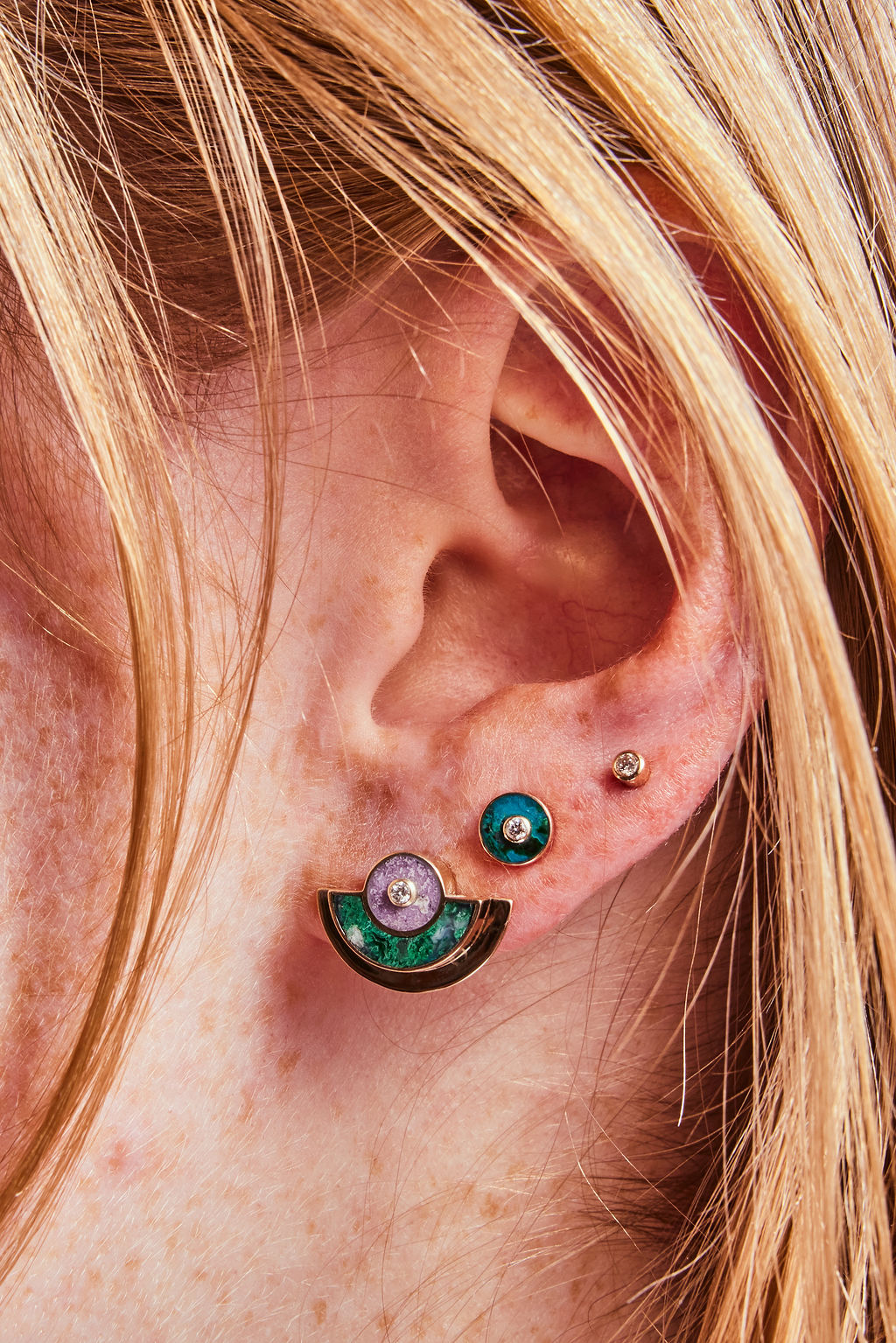 Inspired by the paintings of Sonia Delaunay during the 20th century, these earrings are a playful experiment in color and form.