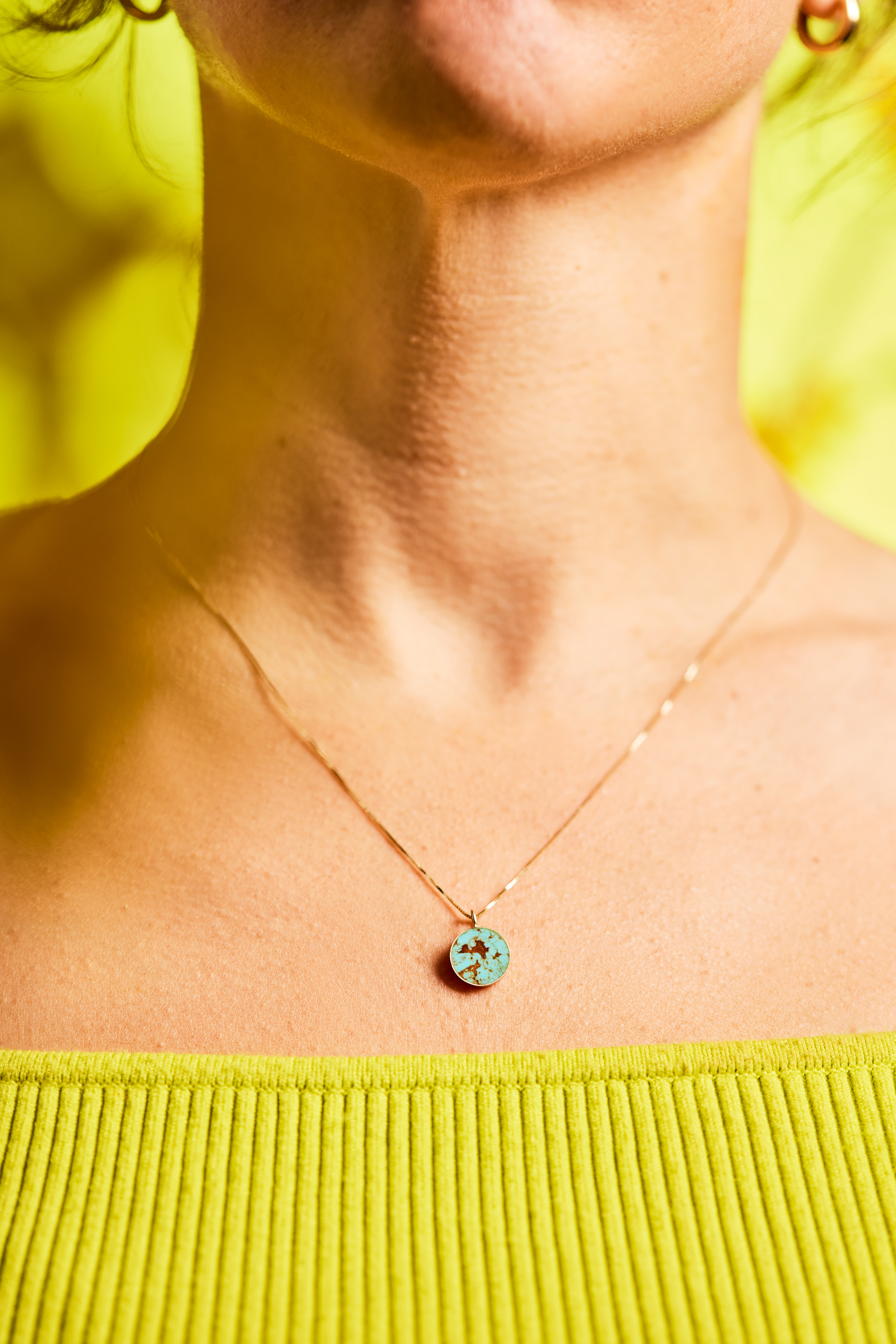 14k recycled yellow gold, Chrysocolla from Arizona.