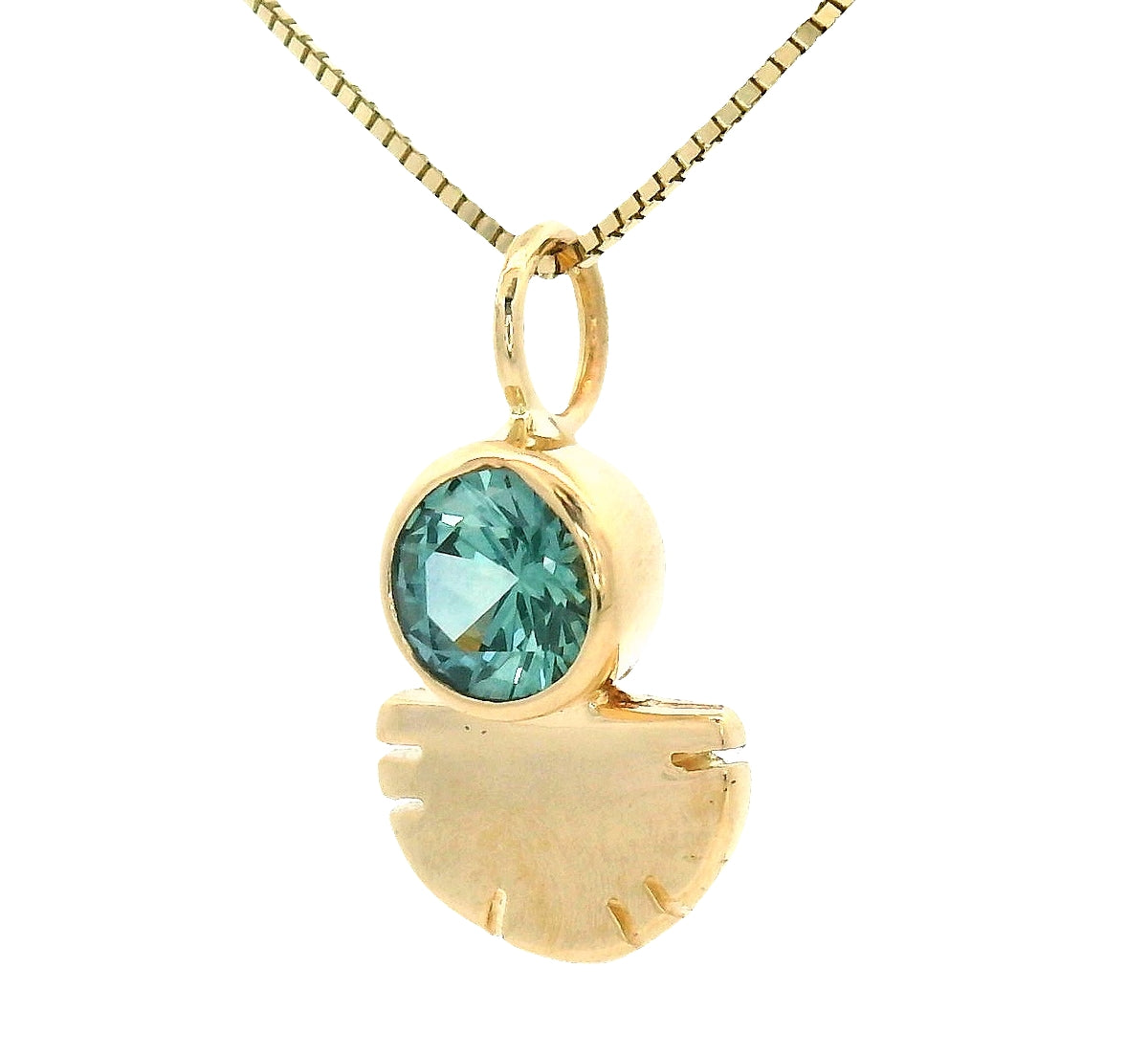 A bright teal green, 5 mm  Montana sapphire pendant necklace inspired by an Eagle.