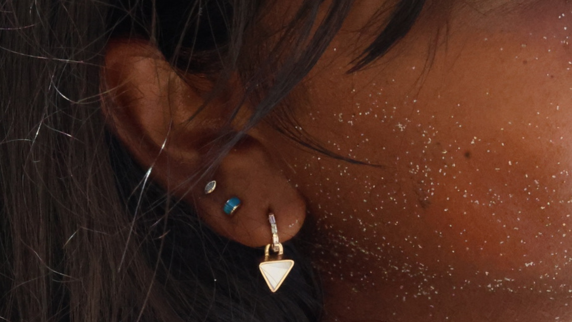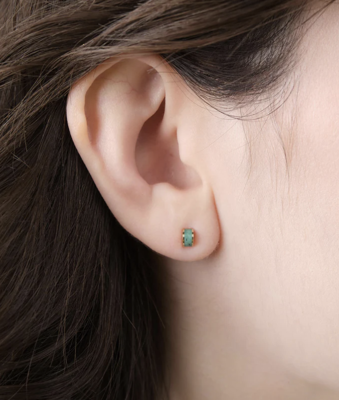 Rosarita is inlaid into channels of half moon shaped gold, for an creative little dash of color.  Small and dainty, perfect for a second piercing. Consider these in addition to our Luna styles from our collection like the Luna Ring or the Luna chain slide necklace.