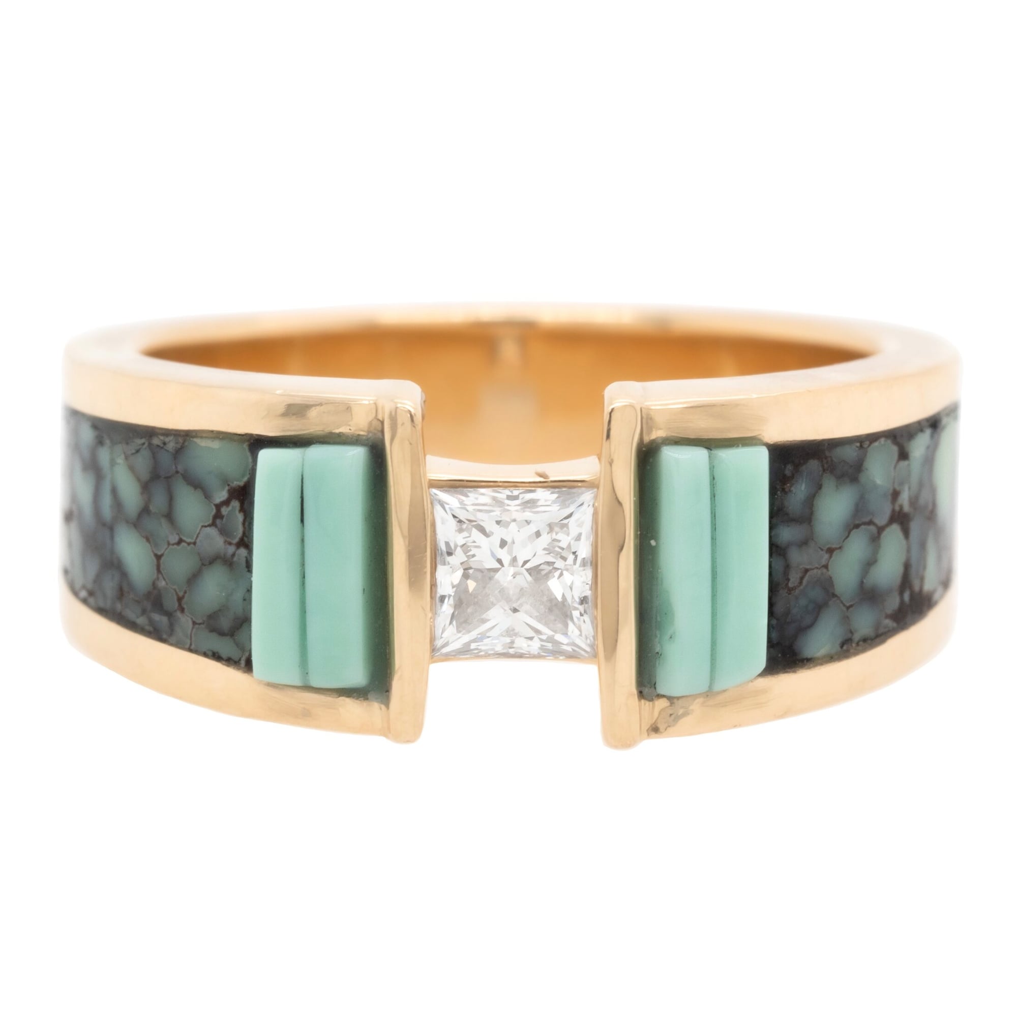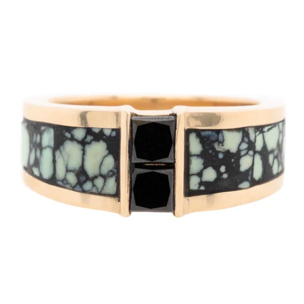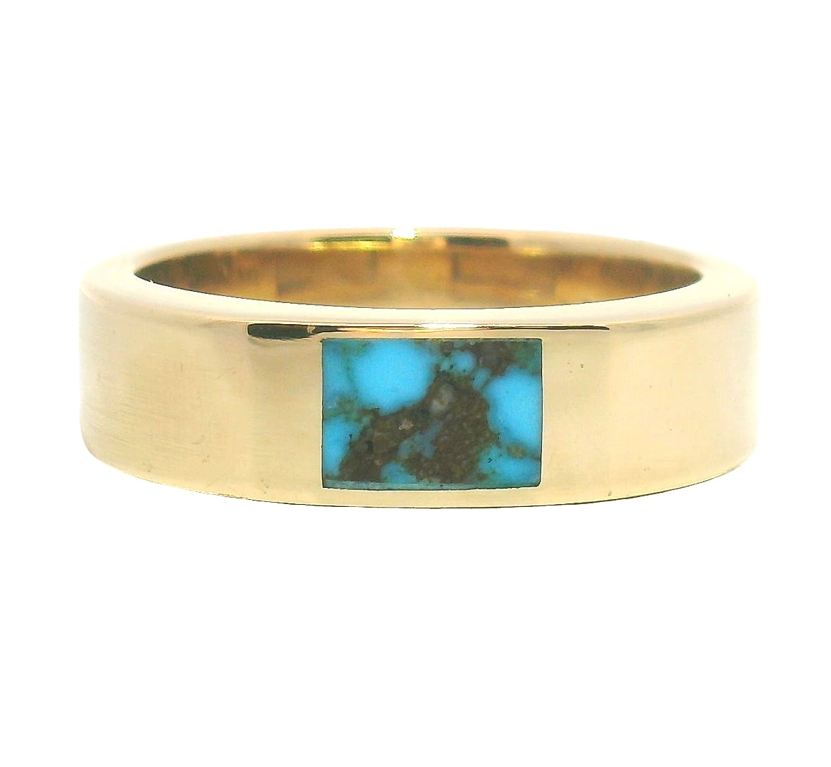 Our artistic inlay compositions emphasize colorful stone selections chosen for depth, texture, and variation. From saturated blue turquoise and green variscite, to softer tonal shifts, in jaspers and agates, each inlay band is a one of a kind composition. Because every stone carries natural variation, no two rings are identical.