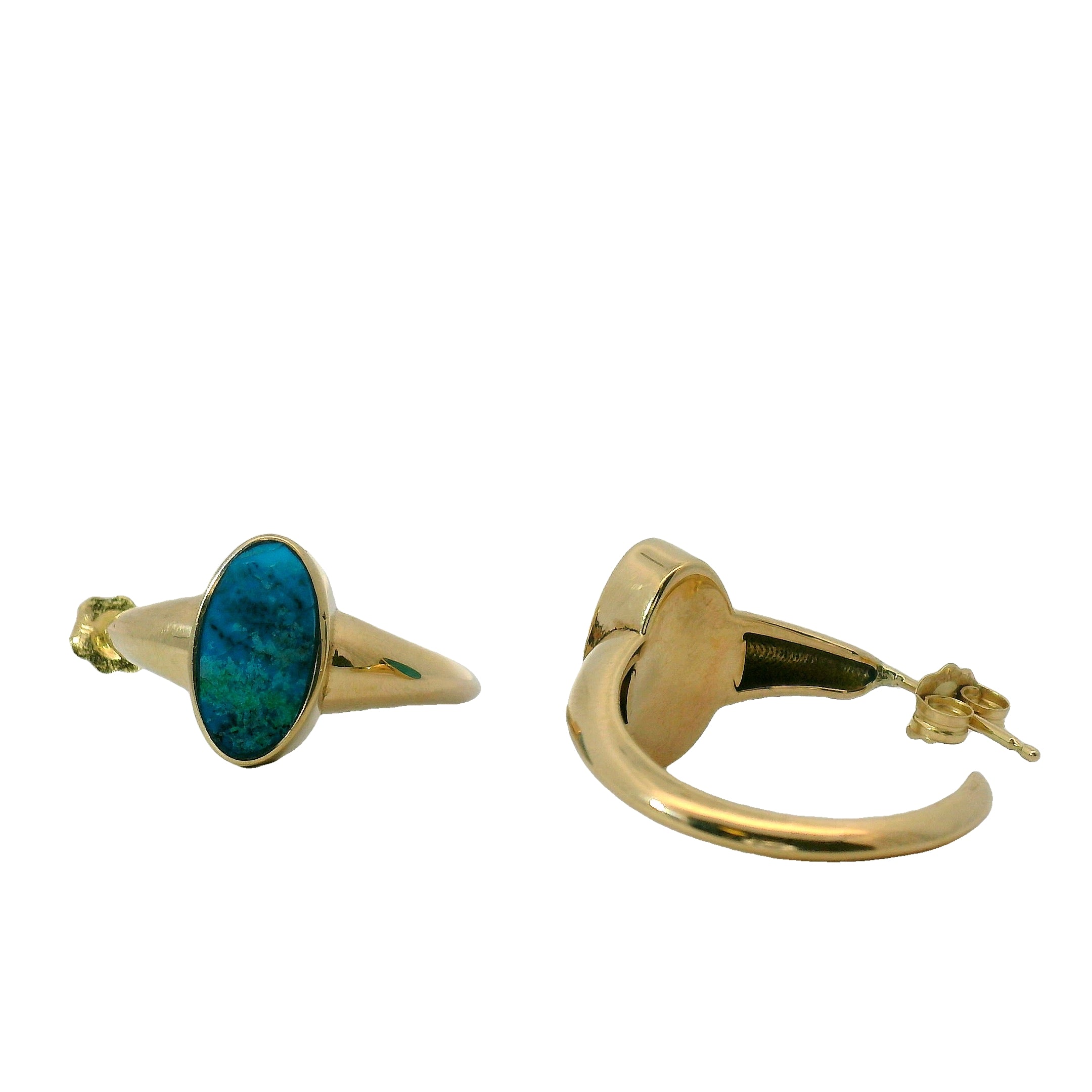 14k recycled yellow gold, Chrysocolla from Arizona.