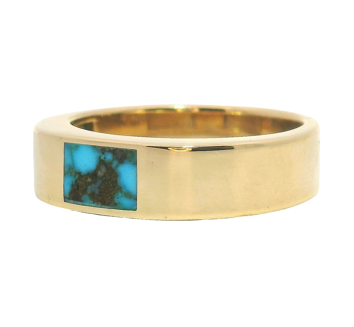 Wide Gold Wedding Band With A Turquoise Inlay Stone