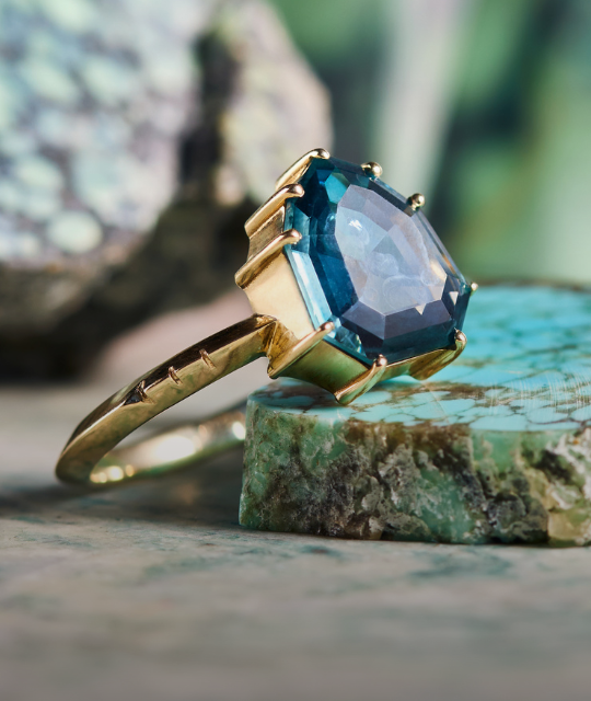 STEP CUT GEOMETRIC SOLITAIRE + CROWN INLAY RING