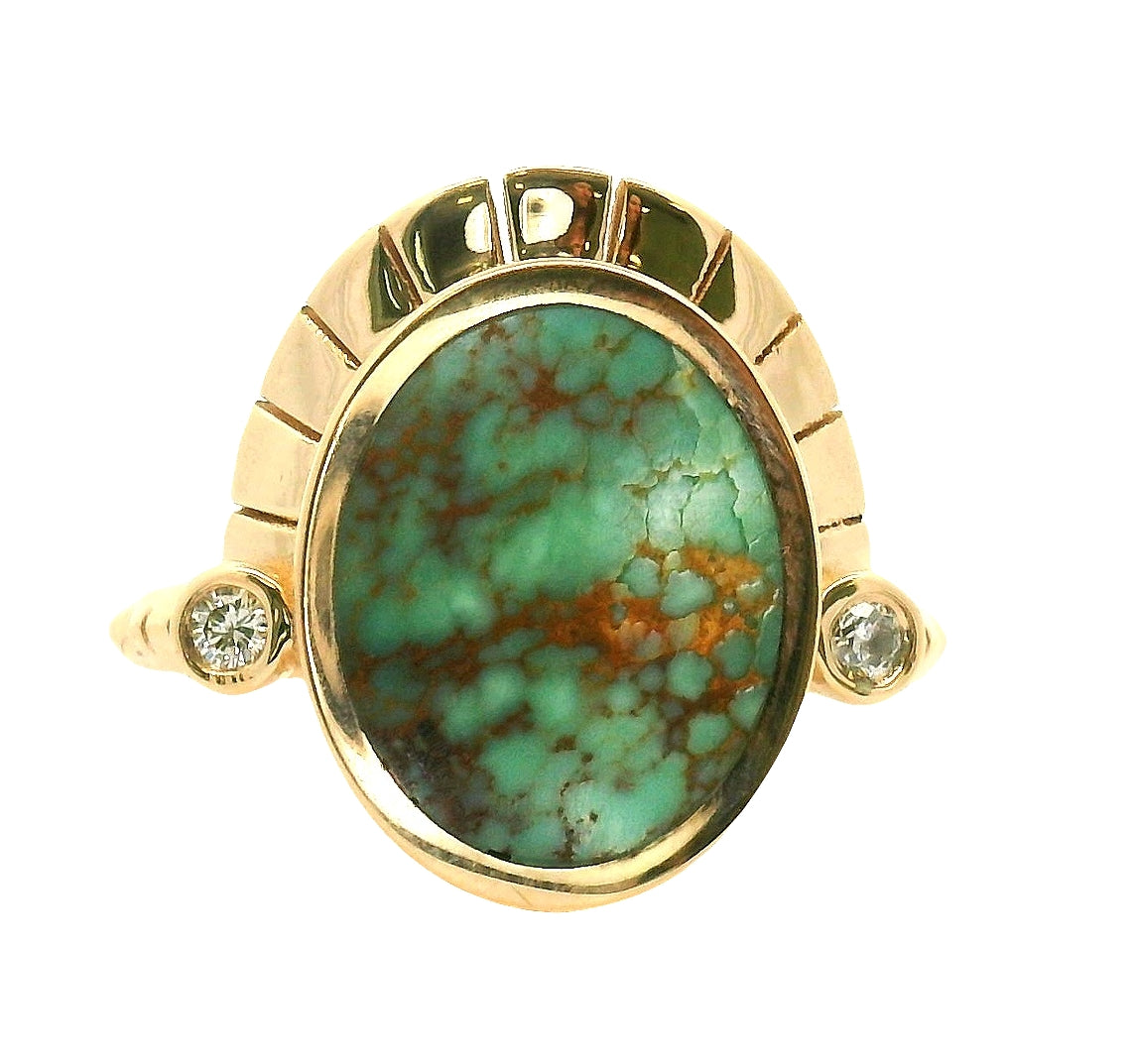 14K GOLD BEZEL WRAPPED INLAY STONE WITH CENTER DIAMOND