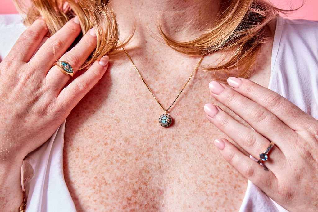 No. 8 Turquoise & white diamond halo necklace