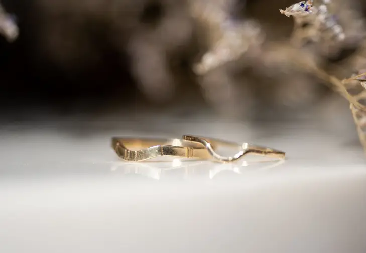 All jewelry requires care and attention. Jewelry should be taken off before bathing, swimming, yoga, applying lotions, working out, doing the dishes, etc. etc.  We recommend a simple pure gold band as the everyday forever..ever wedding ring. Our inlay jewelry can be worn as the occasion permits.