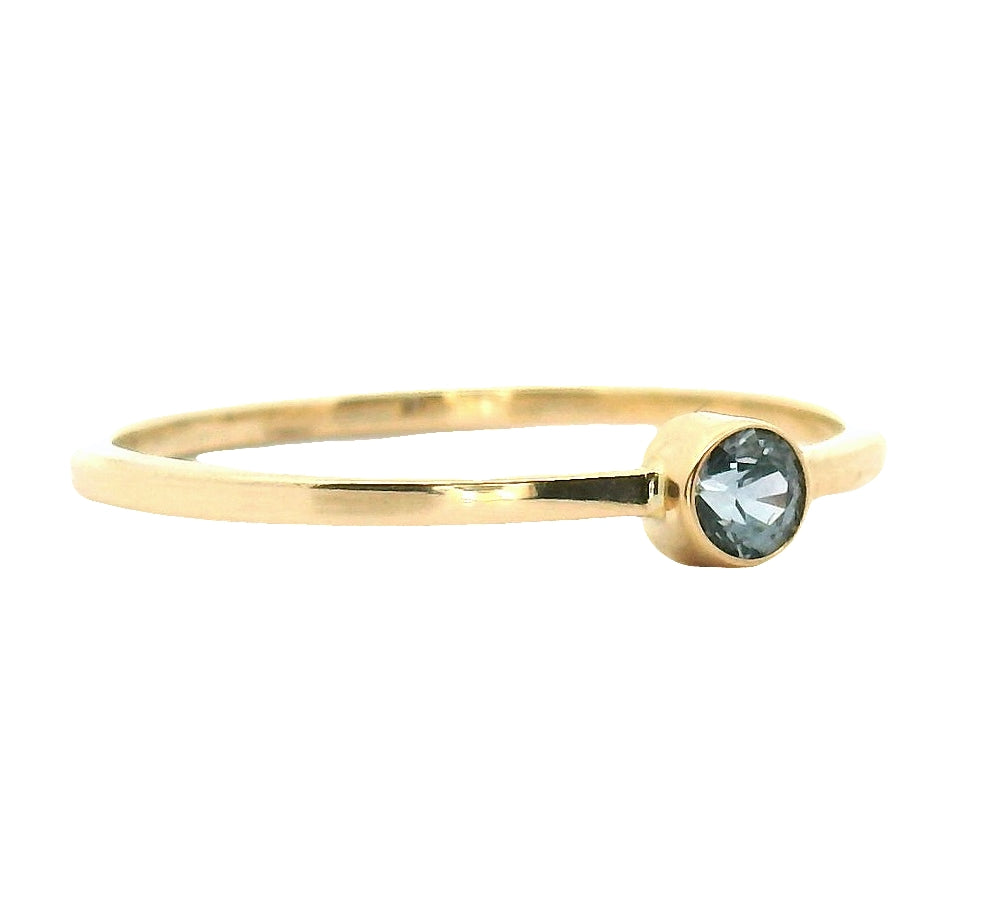 14k recycled yellow gold and a blue 3 mm Montana Sapphire